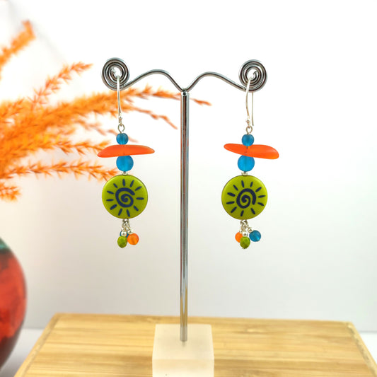 Teal and Green Upcycled Earrings